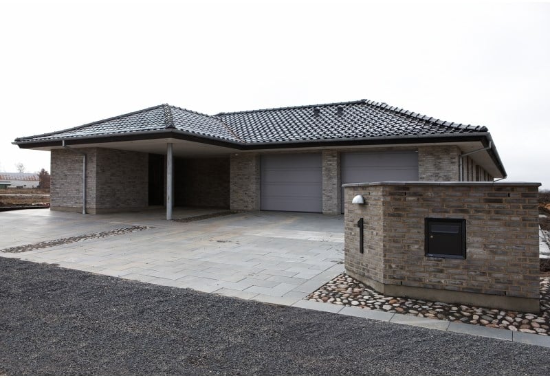 Hus med indmuret postkasse og dobbelt garage