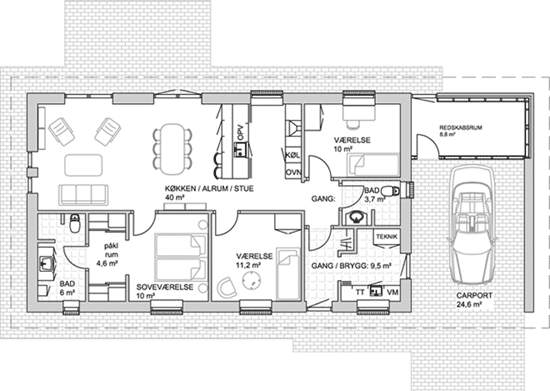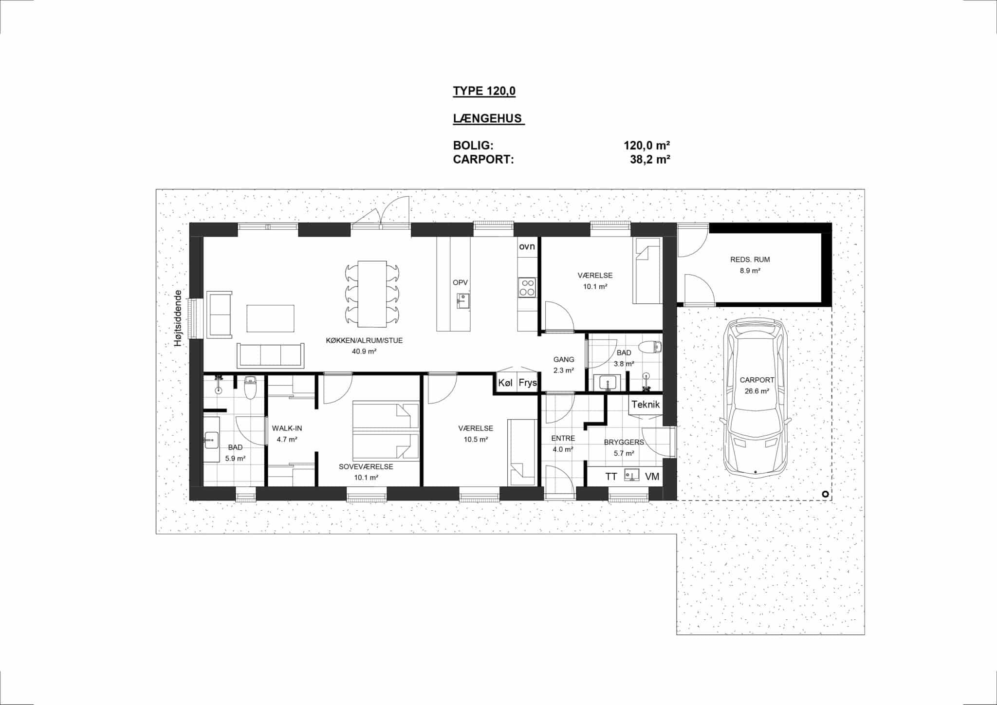 Typehus 120 Information om typehuset Bolig: 120 m2, carport: 38 m2 Værelser: 3 Se grundplan her Se billeder og plantegninger af dette typehus: Vi er kun få klik væk! Send en forespørgsel