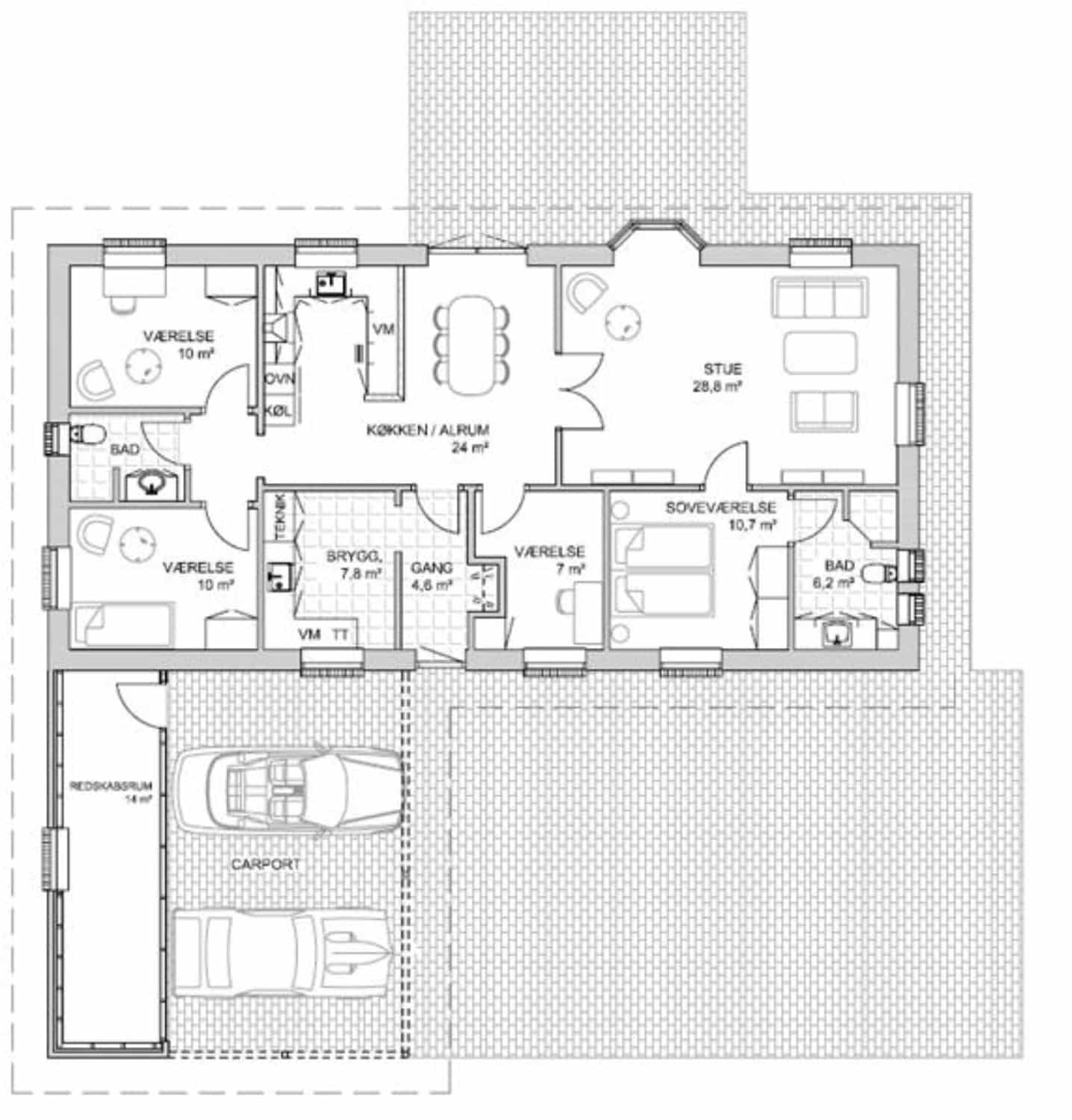 Bolig: 140 m2, carport: 52 m2