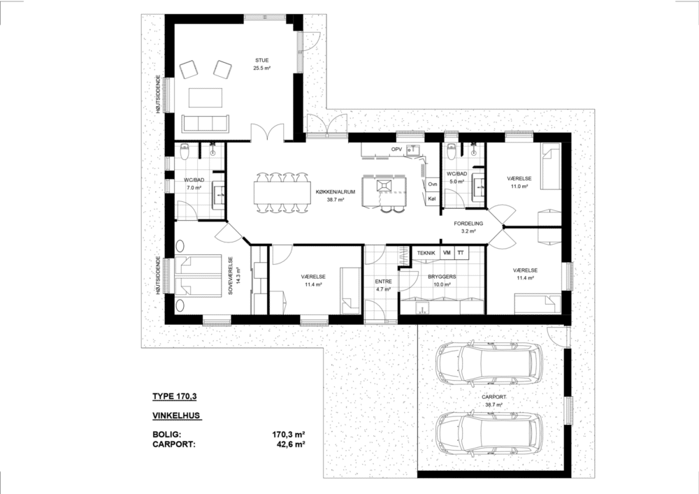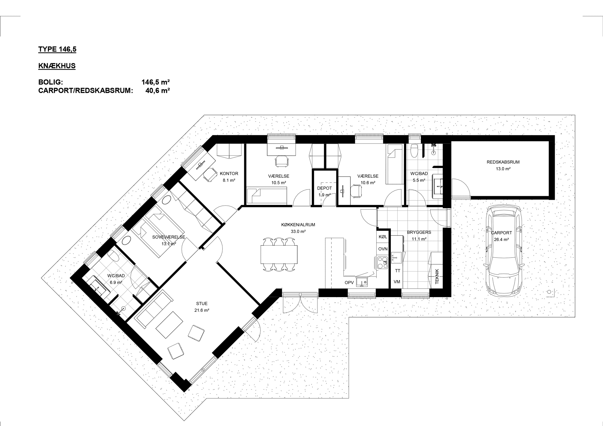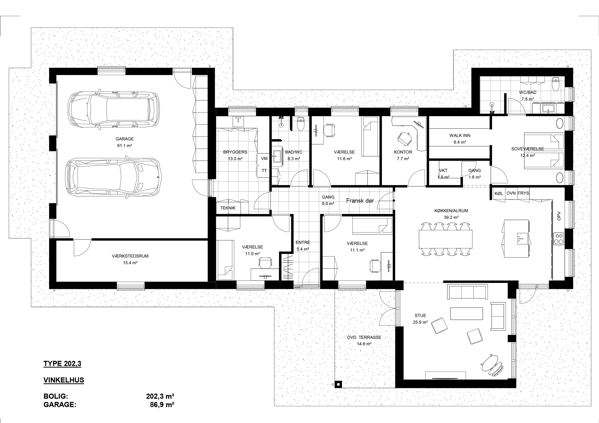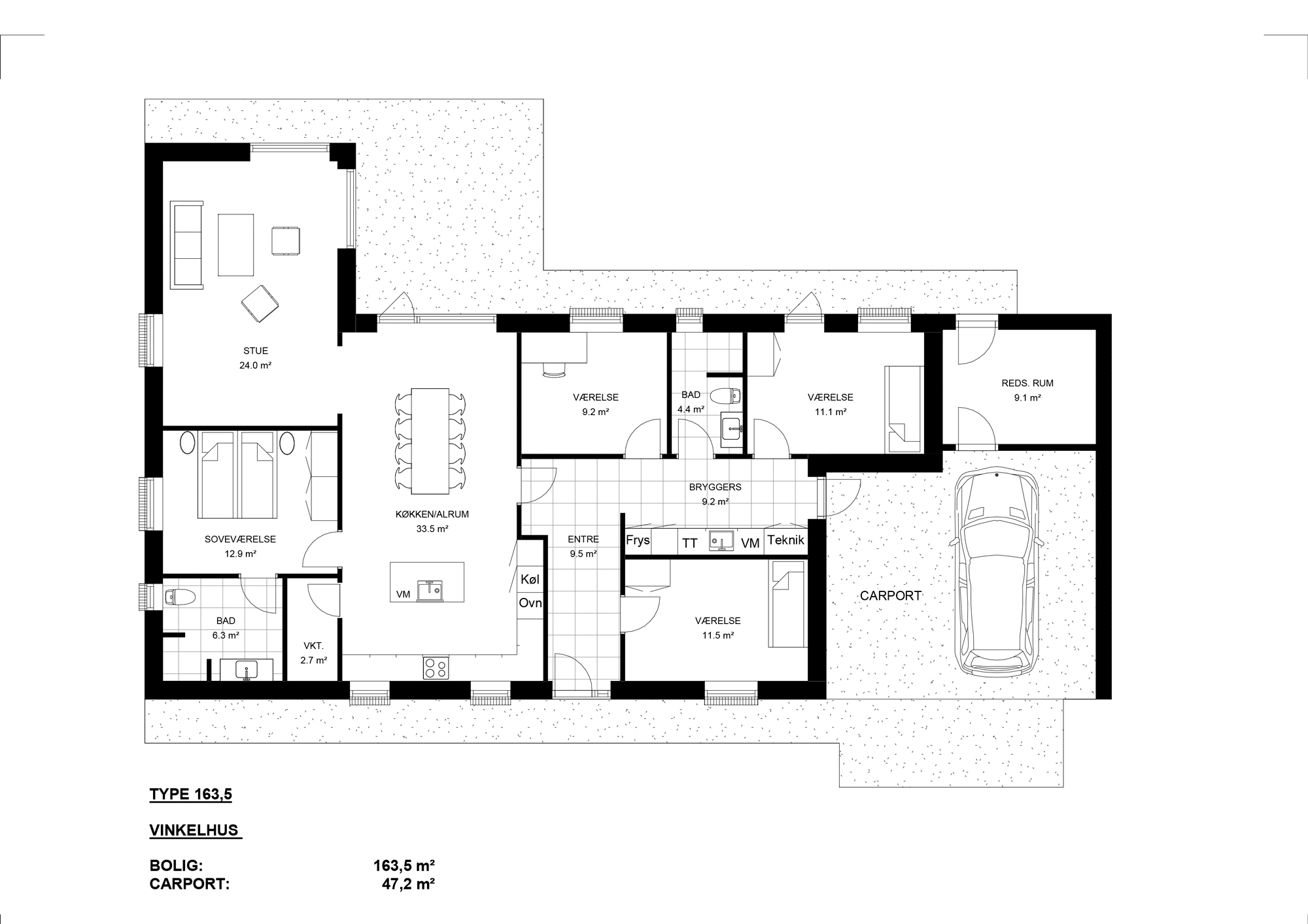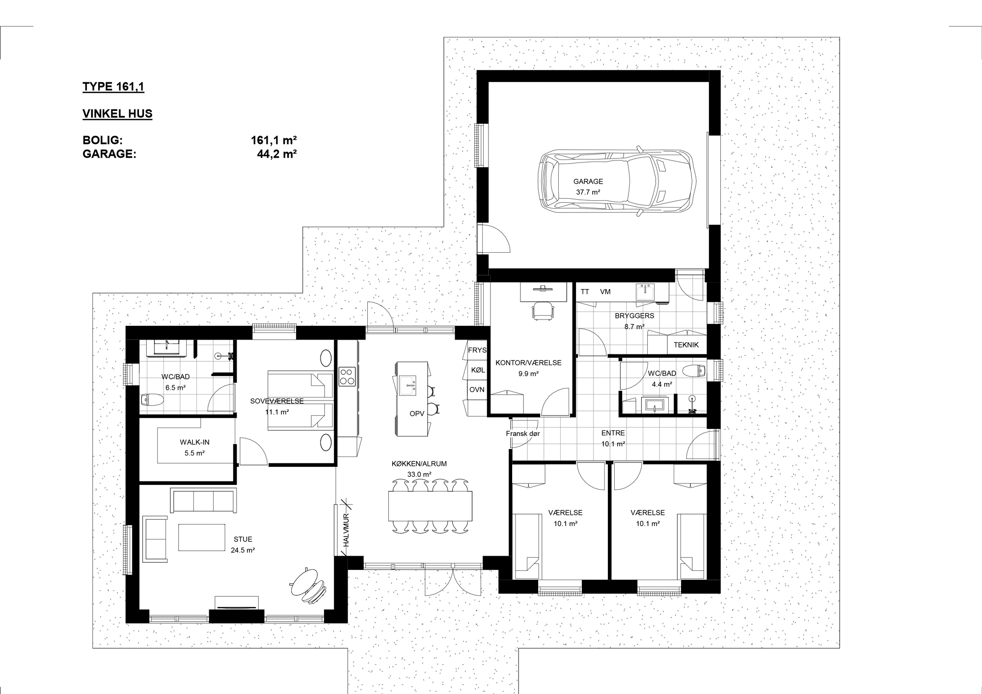 Hos Barvi-Byg A/S er vi eksperter i at bygge individuelle typehuse, hvor du selv har indflydelse på indretning, design og detaljer. Vælger du os til at bygge dit vinkelhus, kan vi tilpasse det efter dine ønsker og behov.